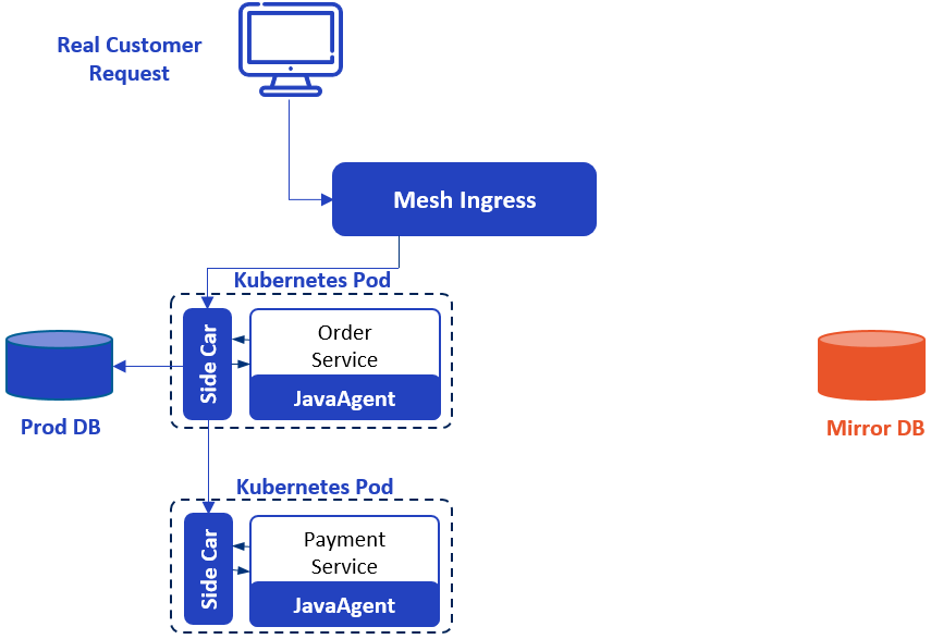 This completes the creation of the test system, to which we can send a request with an X-Mesh-Shadow: shadow header for stress testing. The final system architecture looks like below.